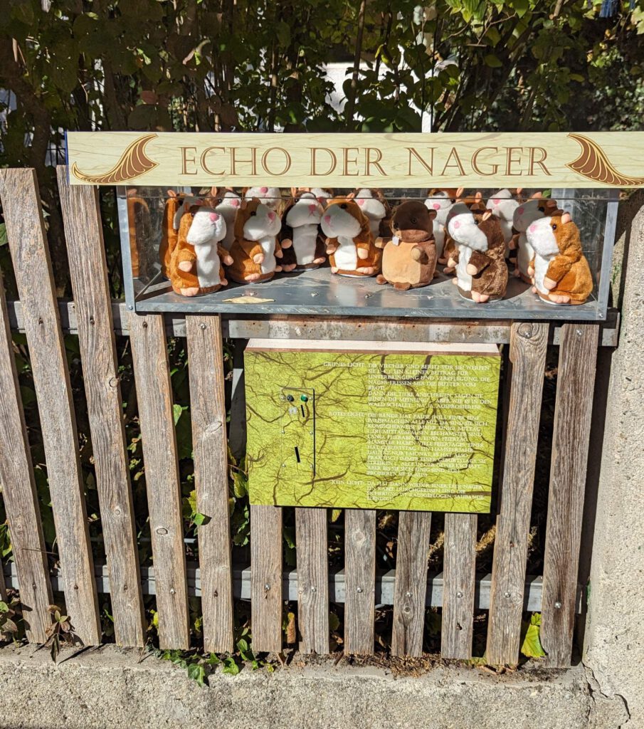 Doch „Echo der Nager“ ist nicht nur Klangspiel, sondern auch Einladung zur Teilhabe. Wer vorbeigeht, wird neugierig, bleibt stehen, spricht hinein – und hört die eigene Stimme kurz darauf auf überraschende Weise wieder. Die Bühne lebt von Interaktion, vom Nebeneinander und vom Zufall: Jeder Moment klingt anders, jede Gruppe bringt neue Töne und Muster hervor. Mal klingt es wie ein Chor, mal wie ein Marktplatz, mal wie ein heilloses Stimmengewirr – aber stets bleibt das Lachen nicht aus.